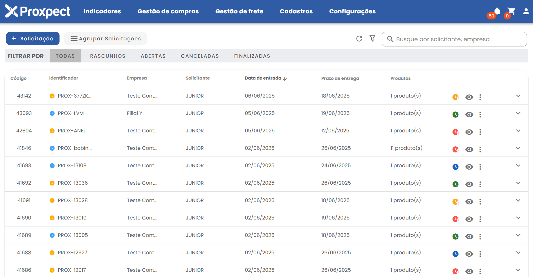Tenha gestão completa, num único local, de solicitações de compras, cotações, negociações e geração de compra automatizada ao seu ERP.